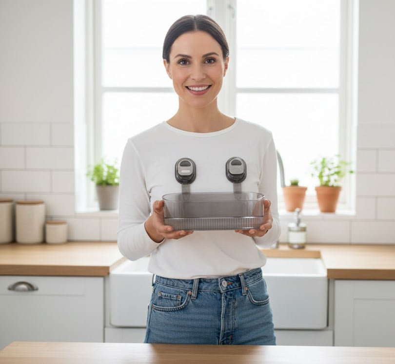 Borrfri Vägghylla™ förändrar allt. Den fäster stenhårt – även på speglar och glas – utan att borra, utan kladd, och håller upp till 5 kg med bara ett tryck.