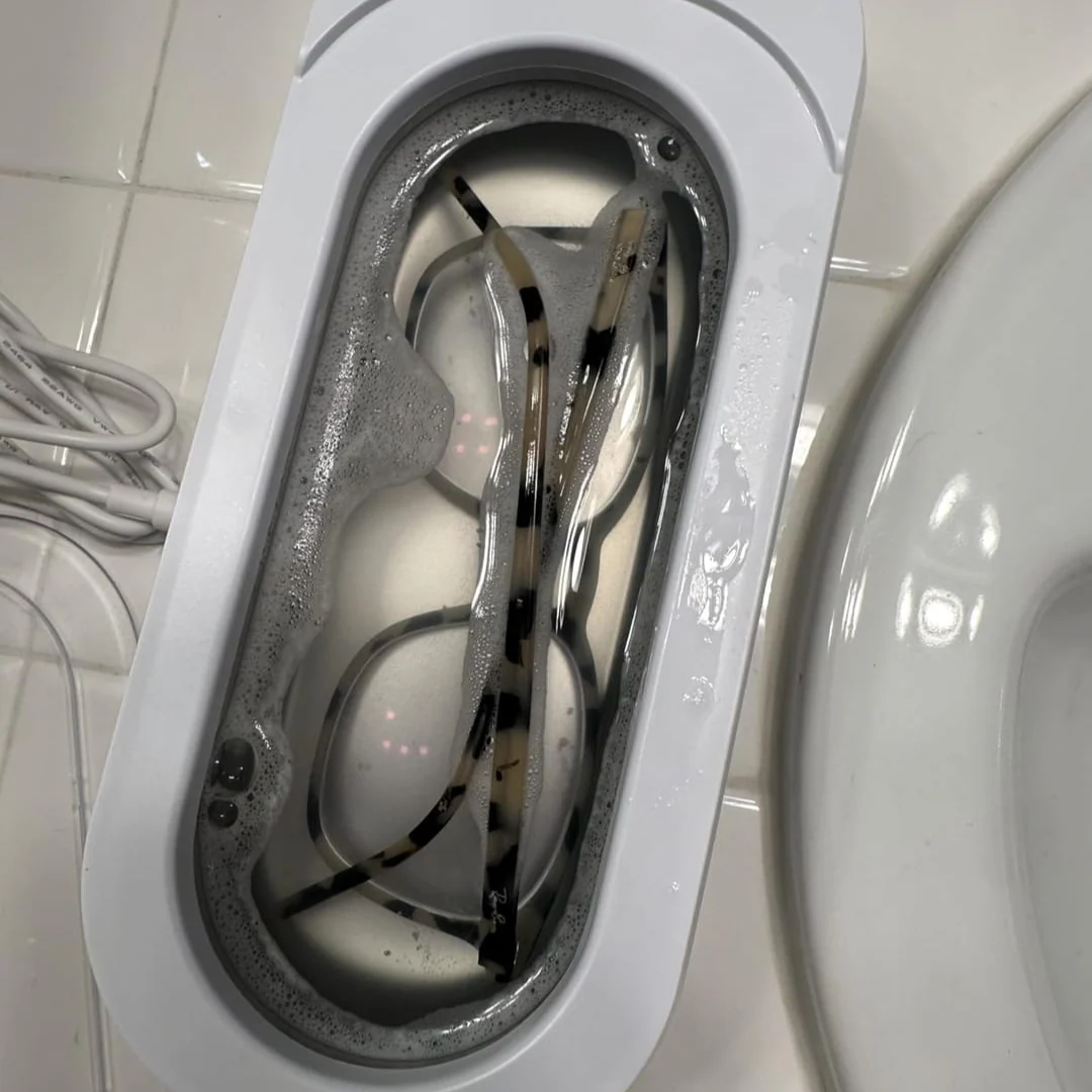 Vår ClearSonic™ glasögonrengörare med ultraljud tar bort smuts, olja och bakterier – utan gnuggning.