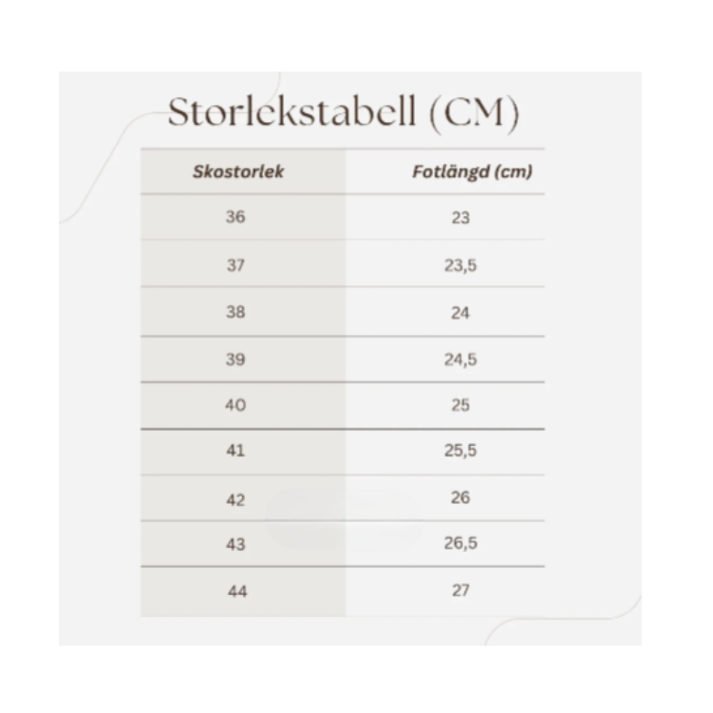 Vi rekommenderar din vanliga storlek, men om du ligger mellan två storlekar eller vill ha extra tåutrymme, välj en storlek större för bästa passform på ErgoSteg™.