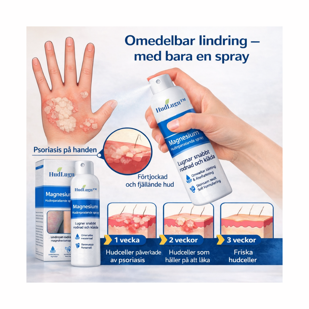 Klåda, rodnad, sveda och torrhet kan snabbt ta över vardagen. HudLugn™ Magnesium hudreparationsspray är utvecklad för att lugna huden snabbt och skonsamt, helt utan att behöva gnidas in. Den fina sprayen absorberas lätt, tränger ner i huden och stödjer hudens naturliga reparationsprocess – även på extra känsliga och intima områden.