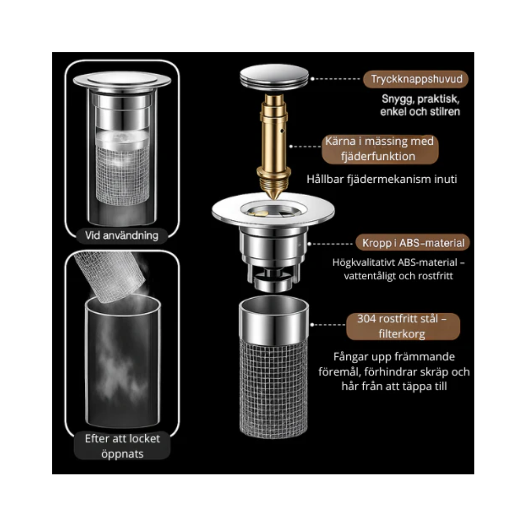 Pop-Up Avloppsstopp med Filter