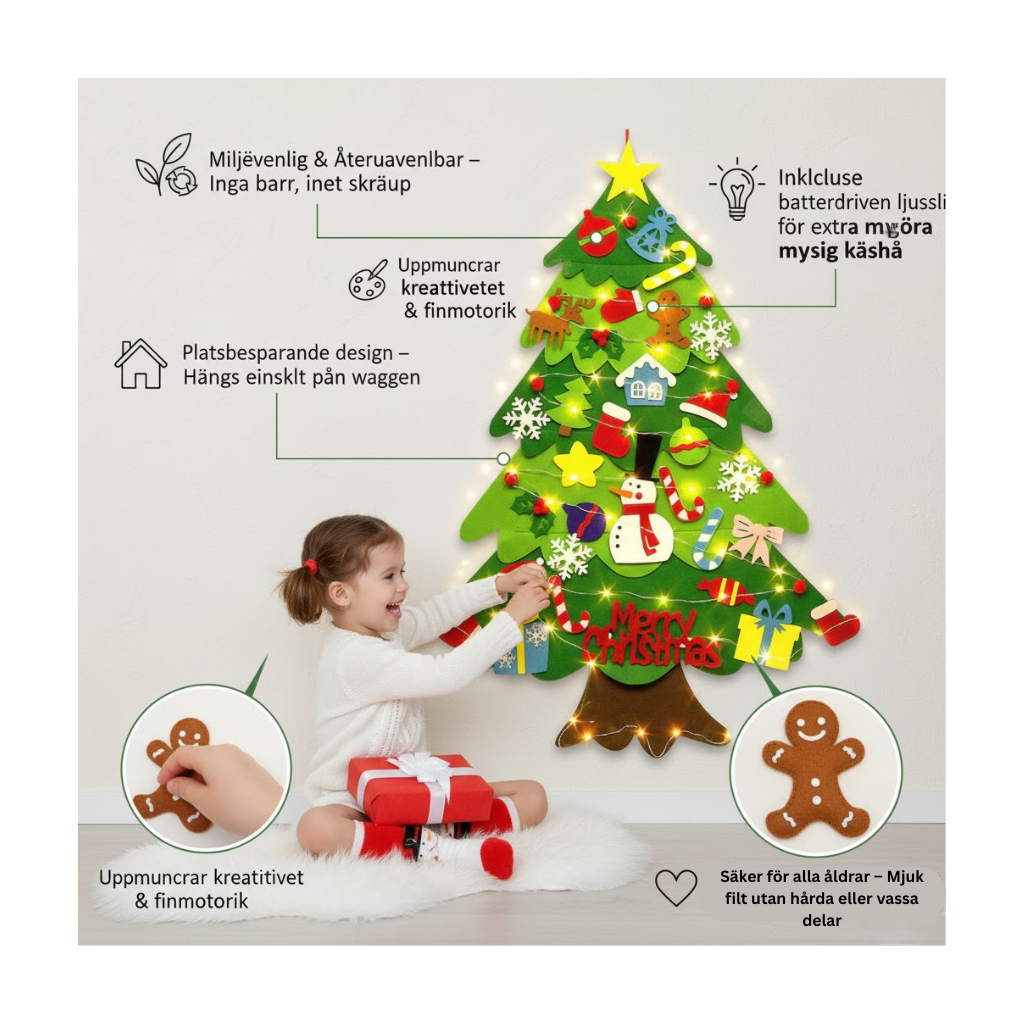 Låt barnen ha sin egen julgran – helt utan risk för välta träd eller trasiga kulor. Perfekt för: