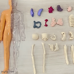 Med avtagbara organ och ben i transparent design för att enkelt kunna se de inre kroppsdelarna.