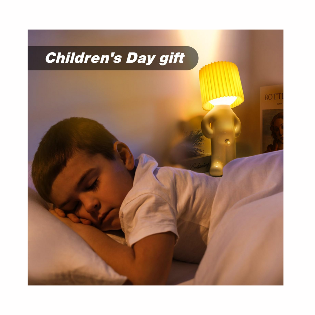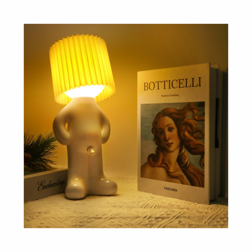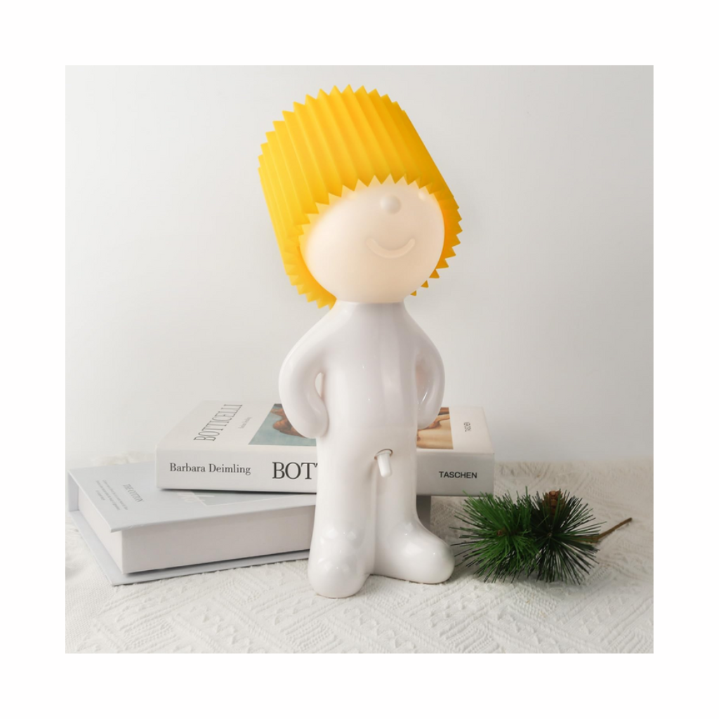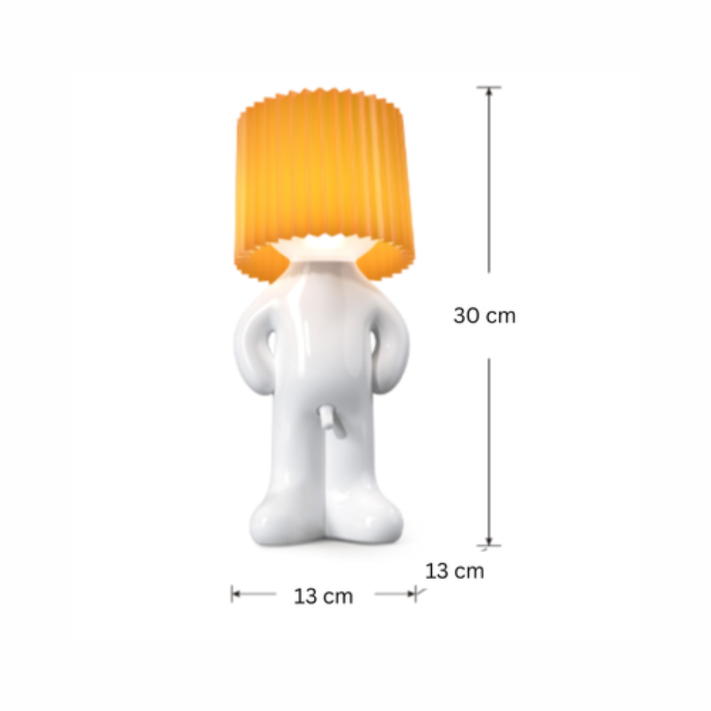 Denna lekfulla lampa har en söt och busig pojkdesign som tillför personlighet till alla utrymmen. Perfekt för sovrum, arbetsrum eller vardagsrum. En riktig blickfångare som sprider glädje och kreativitet i din inredning.