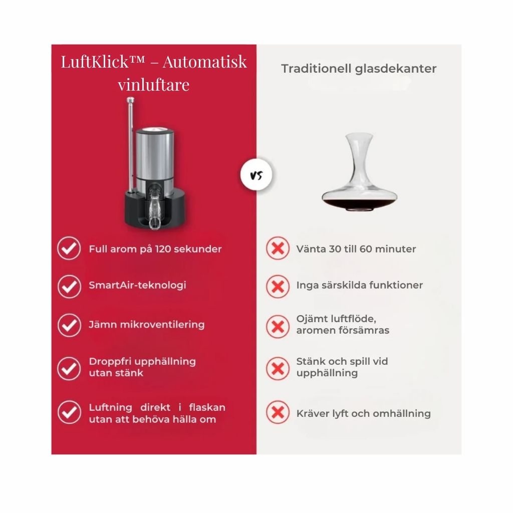 LuftKlick™ är perfekt för dig som vill ha mer smak, mindre krångel och en bättre vinupplevelse varje gång.