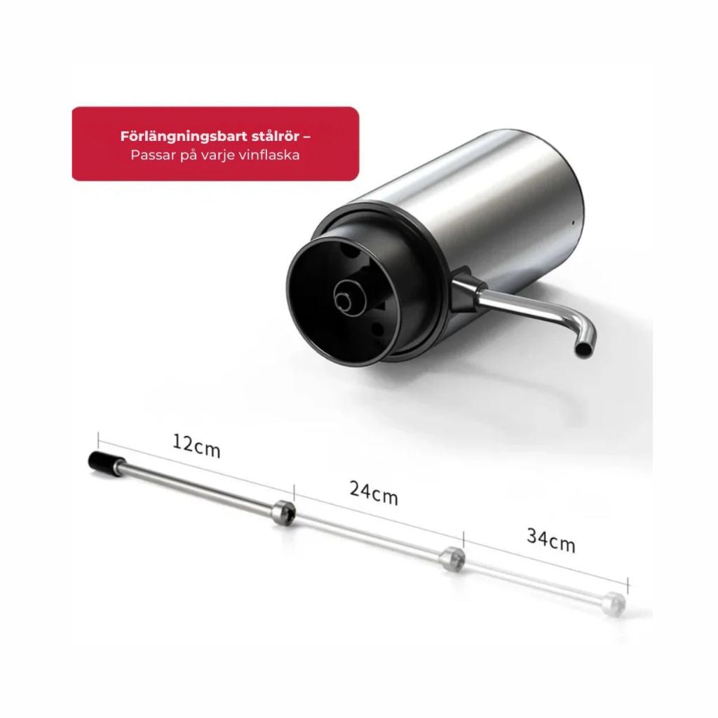 Den droppfria hällpipen ger en jämn, kontrollerad ström som minimerar spill. Röret i rostfritt stål är hygieniskt och hållbart, och USB-laddning gör enheten enkel att använda gång på gång. Passar standardflaskor med rött, vitt, rosé och till och med mousserande vin.