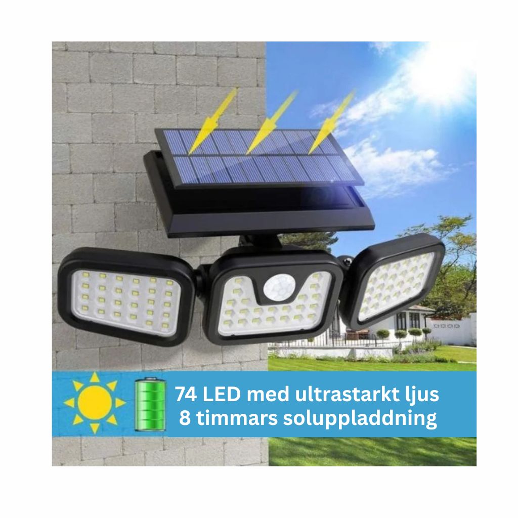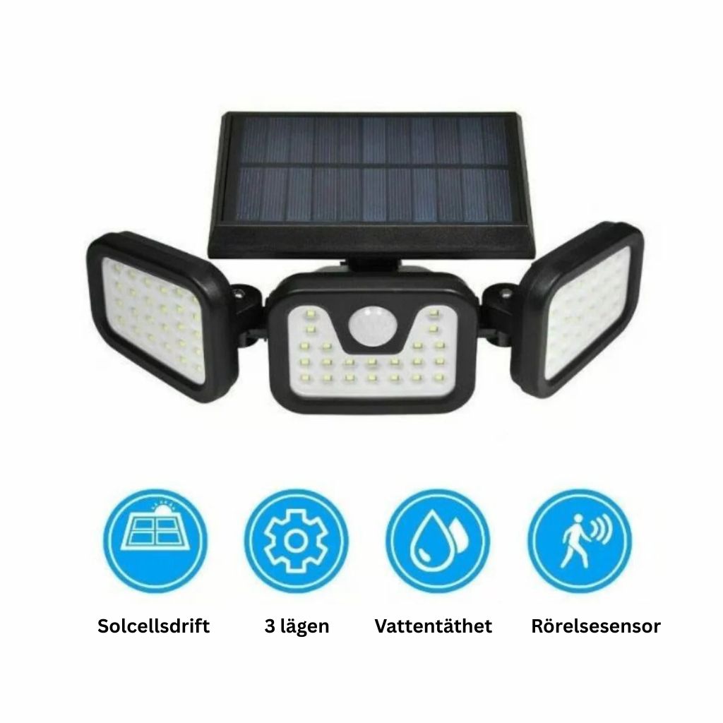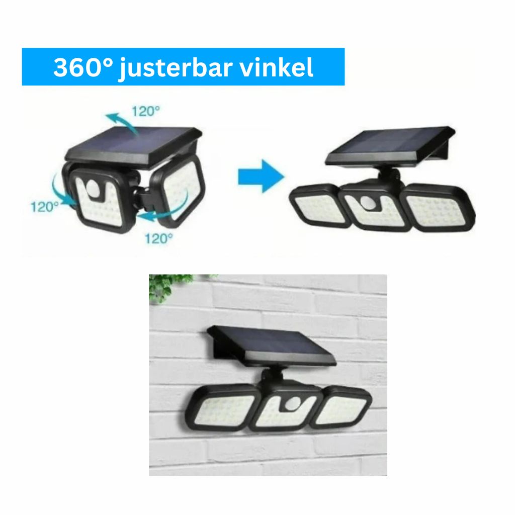 NattVakt™ detekterar rörelse och tänds automatiskt innan du ens hinner fram. De tre justerbara LED-armaturerna ger 270° belysning, vilket gör att du ser hela området runt huset. Den drivs helt av solenergi, kräver ingen kabeldragning och fungerar självständigt – inga elkostnader, inga bekymmer. Bara omedelbar säkerhet varje natt.