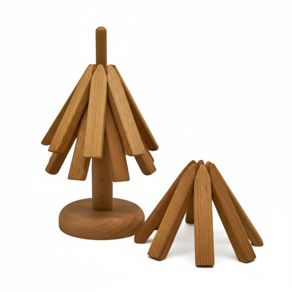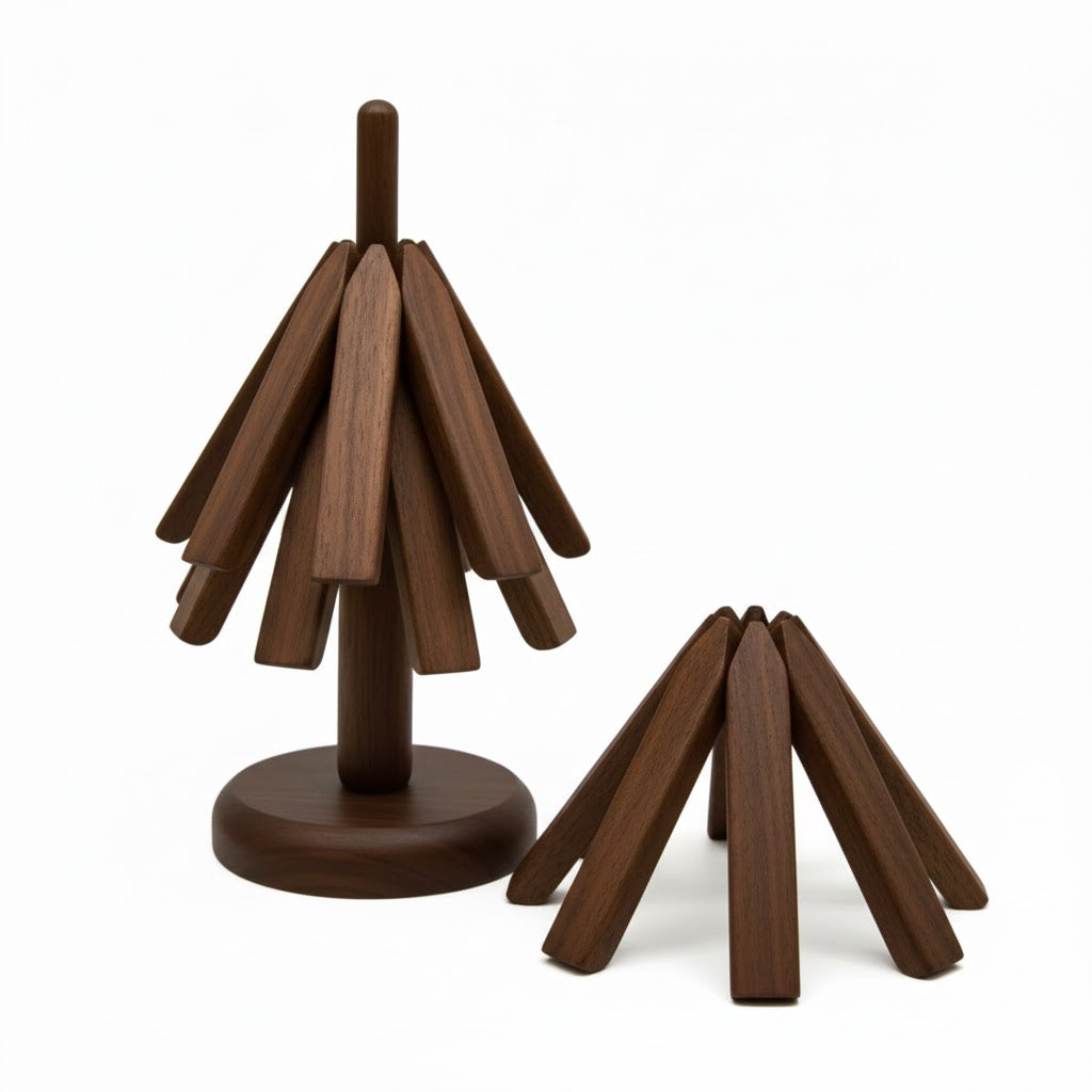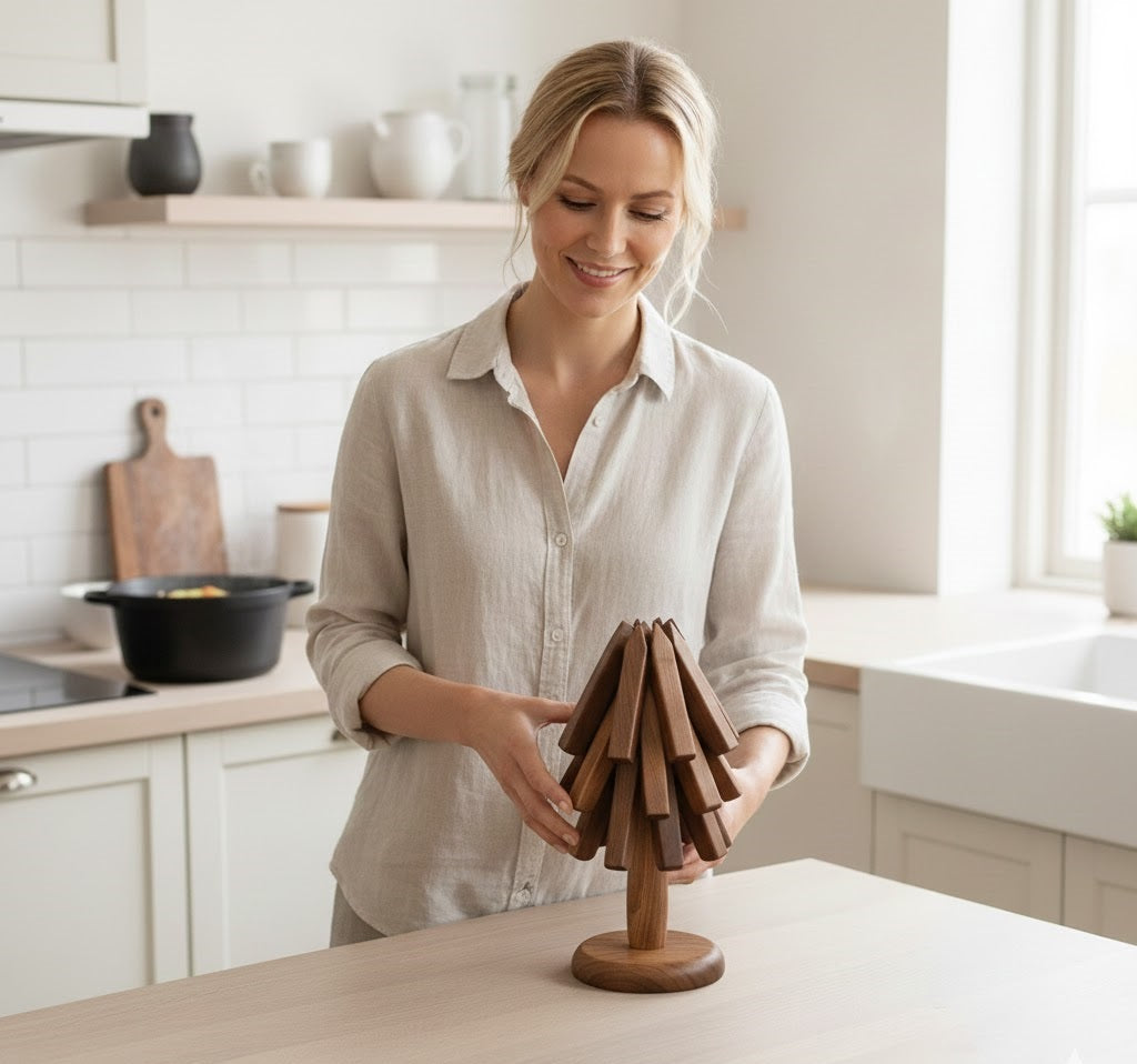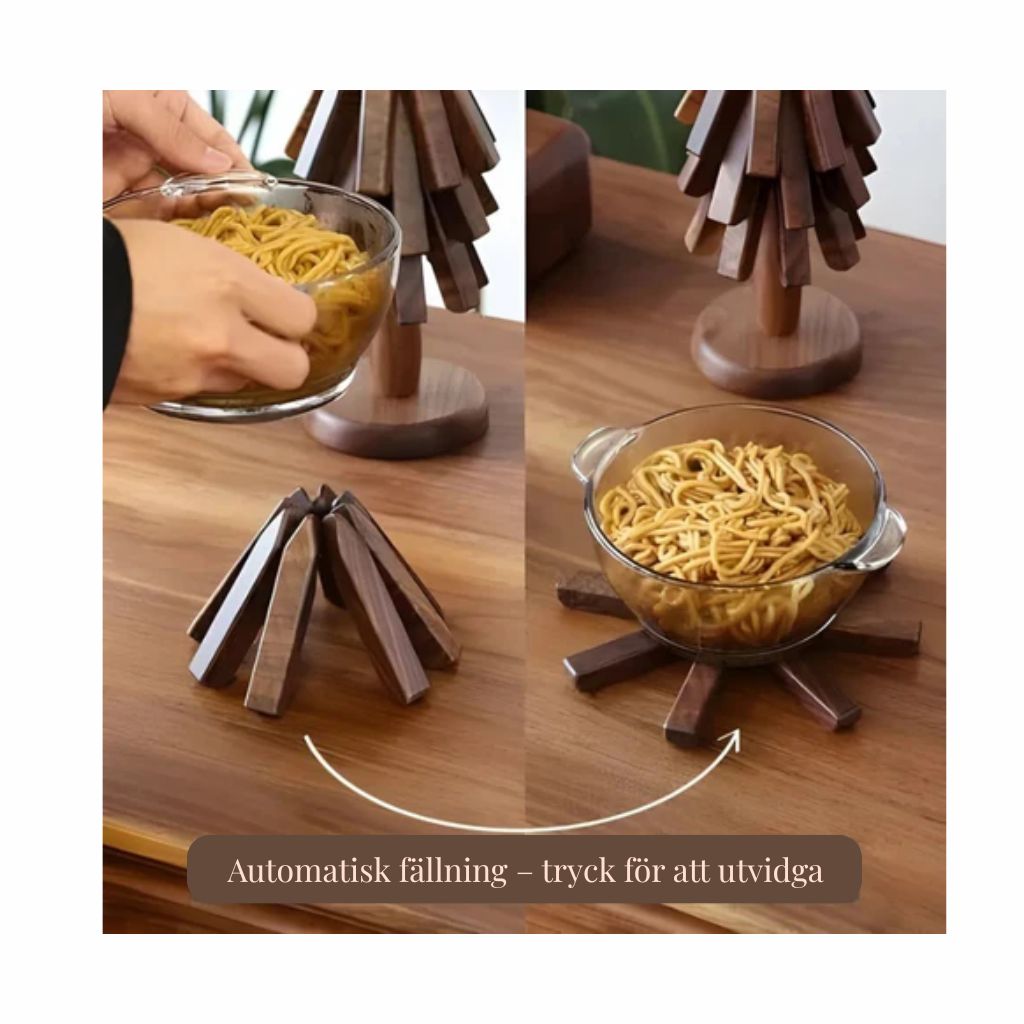 Tillverkad av exklusiv valnöt och bok förenar TräGren™ vardaglig praktisk användning med tidlös design. Älskad av tusentals miljömedvetna hem erbjuder den pålitligt värmeskydd utan att kompromissa med stilen. Oavsett om det gäller familjemiddagar eller middagar med gäster skyddar TräGren™ dina ytor samtidigt som den förskönar din inredning.
