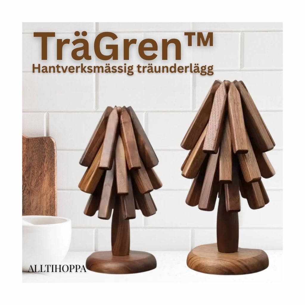 TräGren™ är ett träunderlägg och värmetåligt bordsunderlägg som skyddar bord och köksytor från heta grytor, pannor, skålar, koppar och serveringsfat, samtidigt som det fungerar som ett stilrent blickfång