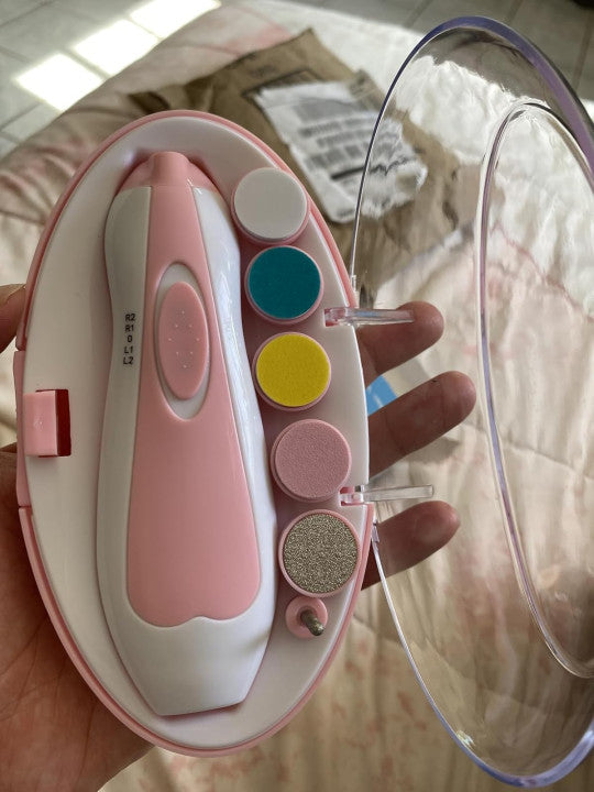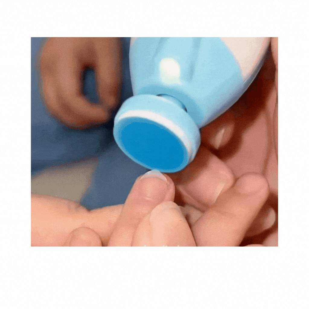 TryggFil™ är en säker elektrisk nagelfil som är speciellt utformad för att varsamt fila bebisnaglar utan risk för skärsår eller irritation.